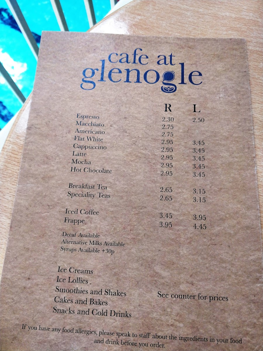 Cafe at Glenogle Menu